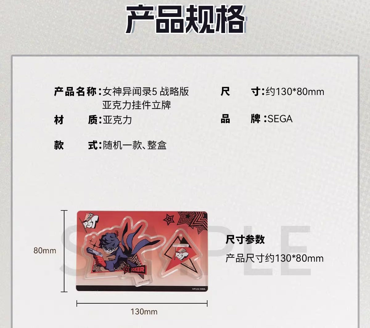 【予約】SEGA Store 中国限定 P5T ペルソナ5 タクティカ アクリルキーホルダースタンド 【ランダム1個】